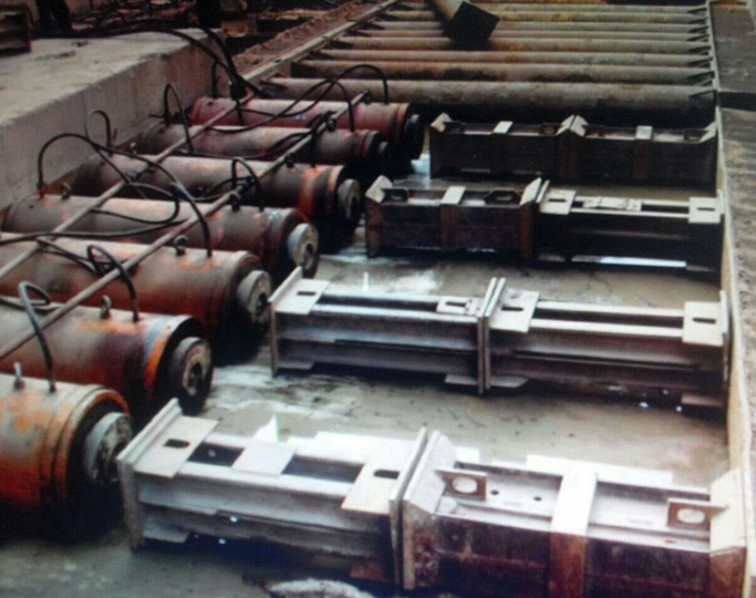 通過中間的小千斤頂的伸動作推動外套往前伸出,外套向前推動管節一段距離。